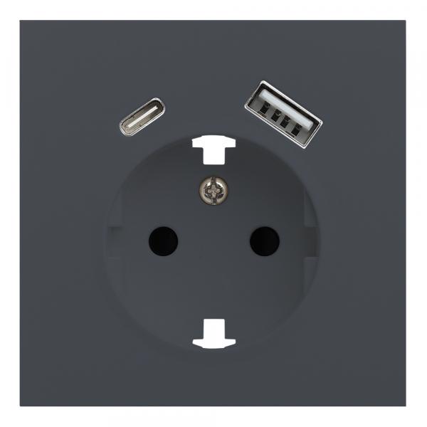Розетка с заземлением, шторками и USB тип A+C (графит матовый) W1171764