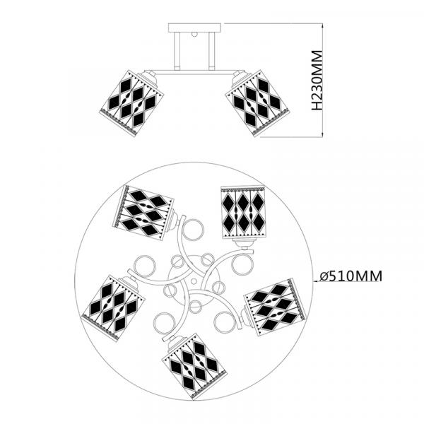 2375-5C, потолочный светильник, D550xH120, 5xE27x40W, excluded