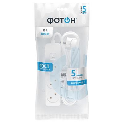 Удлинитель сетевой "ФОТОН" 10-53S, 5м, 3 розетки, 10А, с выкл., Белый 1/20/20
