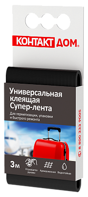Универсальная клеящая супер-лента "КОНТАКТ ДОМ", 3 м, черная 1/12/240
