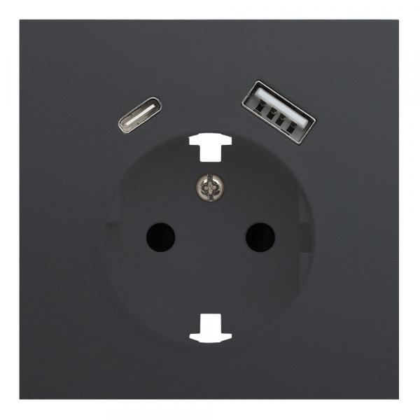 Лицевая панель для розетки 2к+з с USB A+C, черный сатин (35637 MB)
