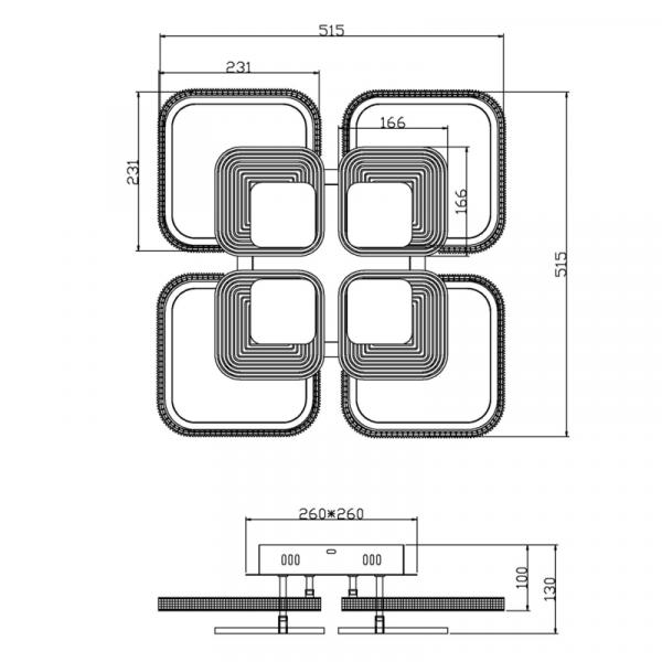4742-5C, потолочный светильник, L500xW600xH100, LEDx34W/68W, 1800/3000LM, 3000/4500/6000K, included,