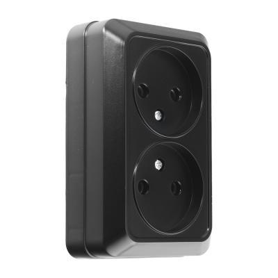 Розетка двойная 2П открытой установки IP20 10А 250В (керамика) черная "Альфа" General
