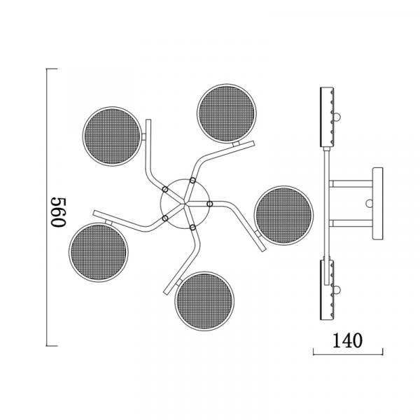 2375-5C, потолочный светильник, D550xH120, 5xE27x40W, excluded