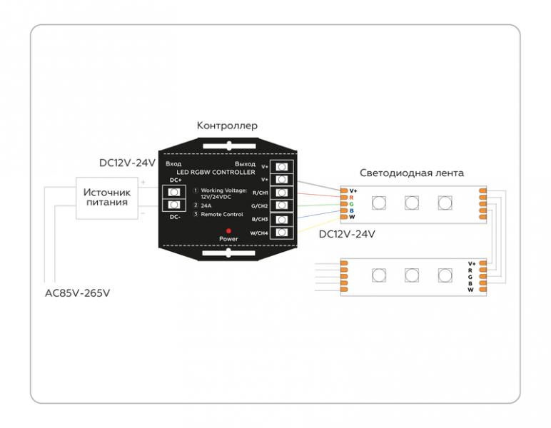 GS11461 контроллер RGBW 24A 12V 288W/ 24V 576W (ПДУ Радио 2.4G AAA)