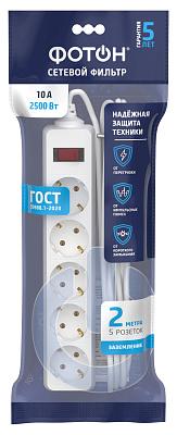 Сетевой фильтр "ФОТОН" SP 10-25ES, 2 м, 5 розеток, 10А, с выкл., с заземл., Белый 1/20/20