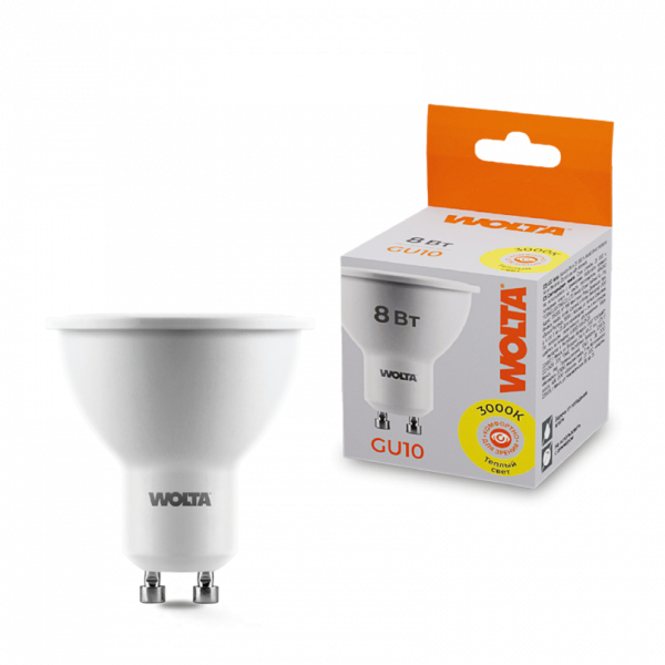 Светодиодная лампа WOLTA 25YPAR16-230-8GU10 PAR16 8Вт 700лм 3000К GU10 1/50