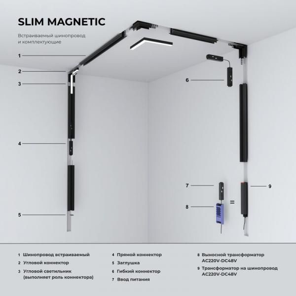 Slim Magnetic Коннектор угловой внутренний для встраиваемого шинопровода под ГКЛ 12,5мм (черный) 852