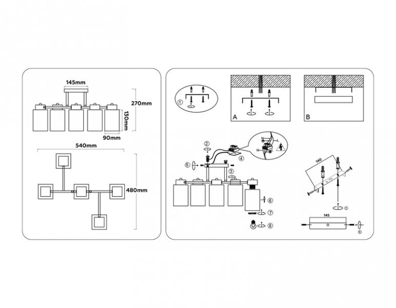 TR303047/5 WH/GD белый/золото E27/5 max 60W 540*480*270